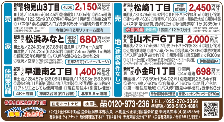 今回の物件は売家2件、売地3件ほかのご紹介です。